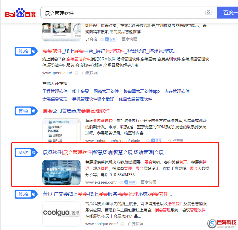 來自【西安】服務seo優化的客戶反饋我們的關鍵詞真的挺難做的,和巨海科技合作之前,找了一家公司優化,結果做了一年多都沒有到首頁;后來找到了巨海科技,他們優化速度很快,用了一個禮拜左右,關鍵詞就做到首頁了!